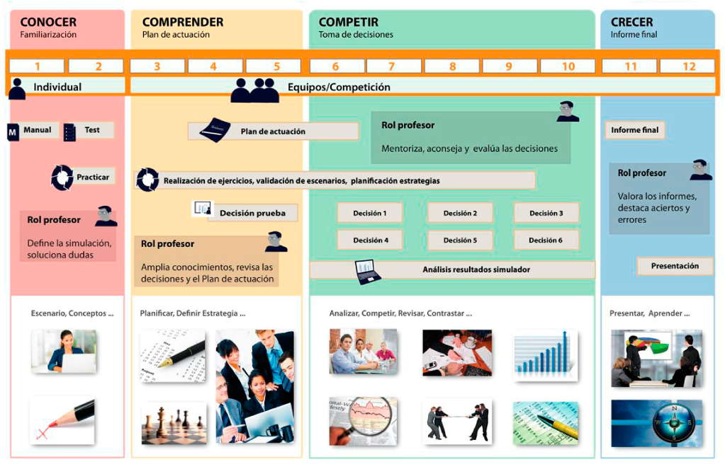 • Simulaciones individuales o por equipo.